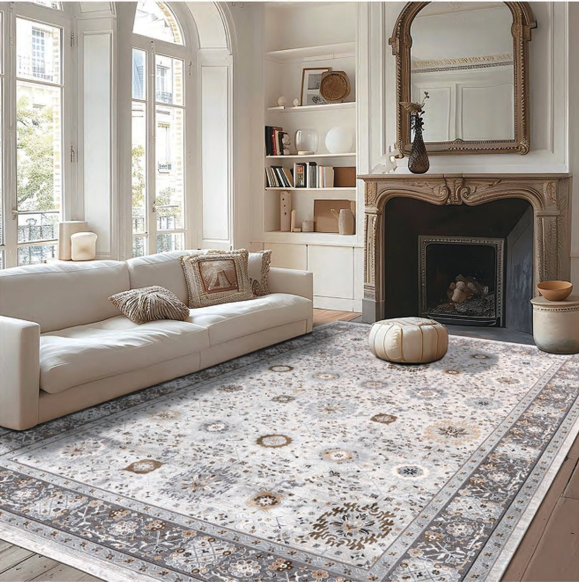 พรมดีไซน์หรูหรา นำเข้าจากตุรกี โดดเด่นด้วยหลากหลายลวดลายทั้งวินเจคลาสสิก ลายนกยูงศิลป์ พรมราชสำนักยุโรป และลายกระเบื้องเรขาคณิตวินเทจ แต่ละแบบออกแบบอย่างพิถีพิถันในโทนสีอบอุ่น เช่น ฟ้า เทา น้ำตาล และดำ เหมาะกับห้องนั่งเล่น ห้องรับแขก โถงบ้าน หรือพื้นที่ตกแต่งที่ต้องการความหรูหราและมีสไตล์เฉพาะตัว ให้สัมผัสนุ่ม เงางาม และช่วยยกระดับบรรยากาศของบ้านให้ดูสง่างามเหนือระดับ