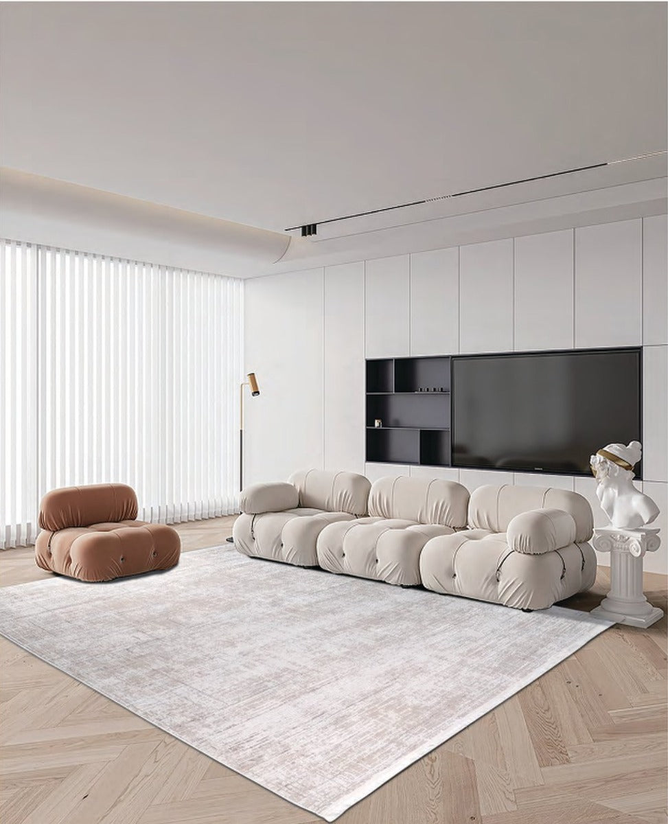 พรมลายพื้นเรียบโทนสีเบจอ่อน ผิวสัมผัสนุ่มสบายตา ช่วยเติมเต็มความอบอุ่นและความเรียบหรูให้กับห้องนั่งเล่นหรือห้องรับแขกในสไตล์โมเดิร์นมินิมอล ผลิตจากอะคริลิกเท็กซ์เจอร์คุณภาพสูง นำเข้าจากตุรกี ทำความสะอาดง่าย คงรูปได้ดี ไม่ยุบตัวง่าย