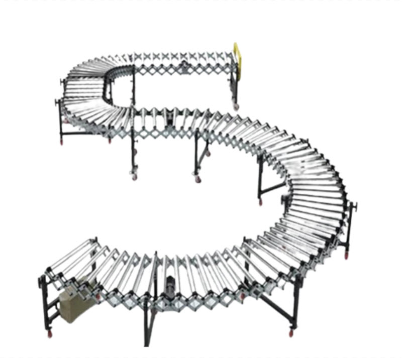 สายพานลำเลียงไฟฟ้าแบบม้วนสำหรับส่งของ รุ่นปรับระดับได้ ขนาดยืดหยุ่น หมุนได้