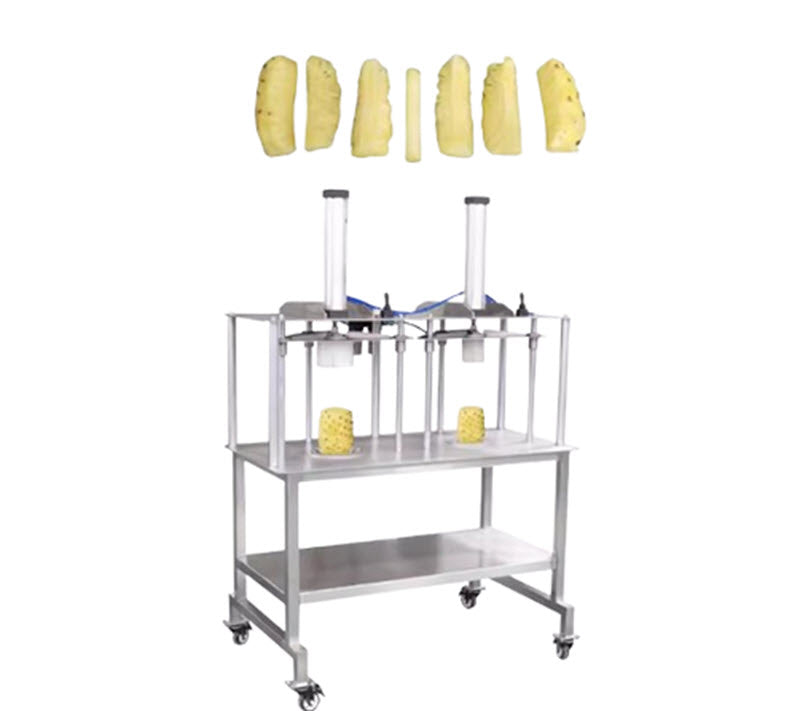 เครื่องจักรแปรรูปผลไม้แบบสองหัว สายการผลิตทำลายเปลือกและตัดชิ้น สำหรับสับปะรด ฟักทอง เผือก