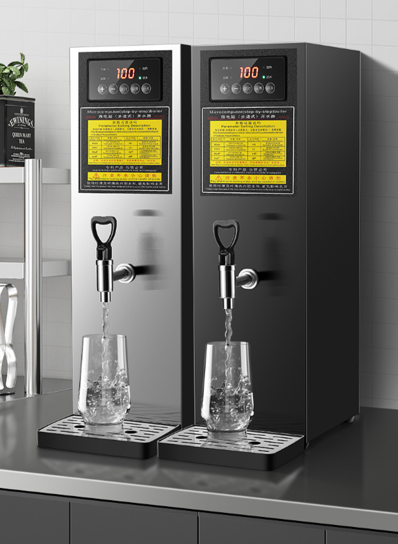 เครื่องจ่ายน้ำร้อนระบบควบคุมอุณหภูมิแบบดิจิตอล เหมาะสำหรับร้านอาหาร ร้านชา-กาแฟ ออฟฟิศ หรือโรงงานที่ต้องการน้ำร้อนตลอดเวลา มีหน้าจอ LED แสดงอุณหภูมิ พร้อมระบบควบคุมแบบไมโครคอมพิวเตอร์ ใช้งานง่าย ประหยัดพลังงาน และปลอดภัย