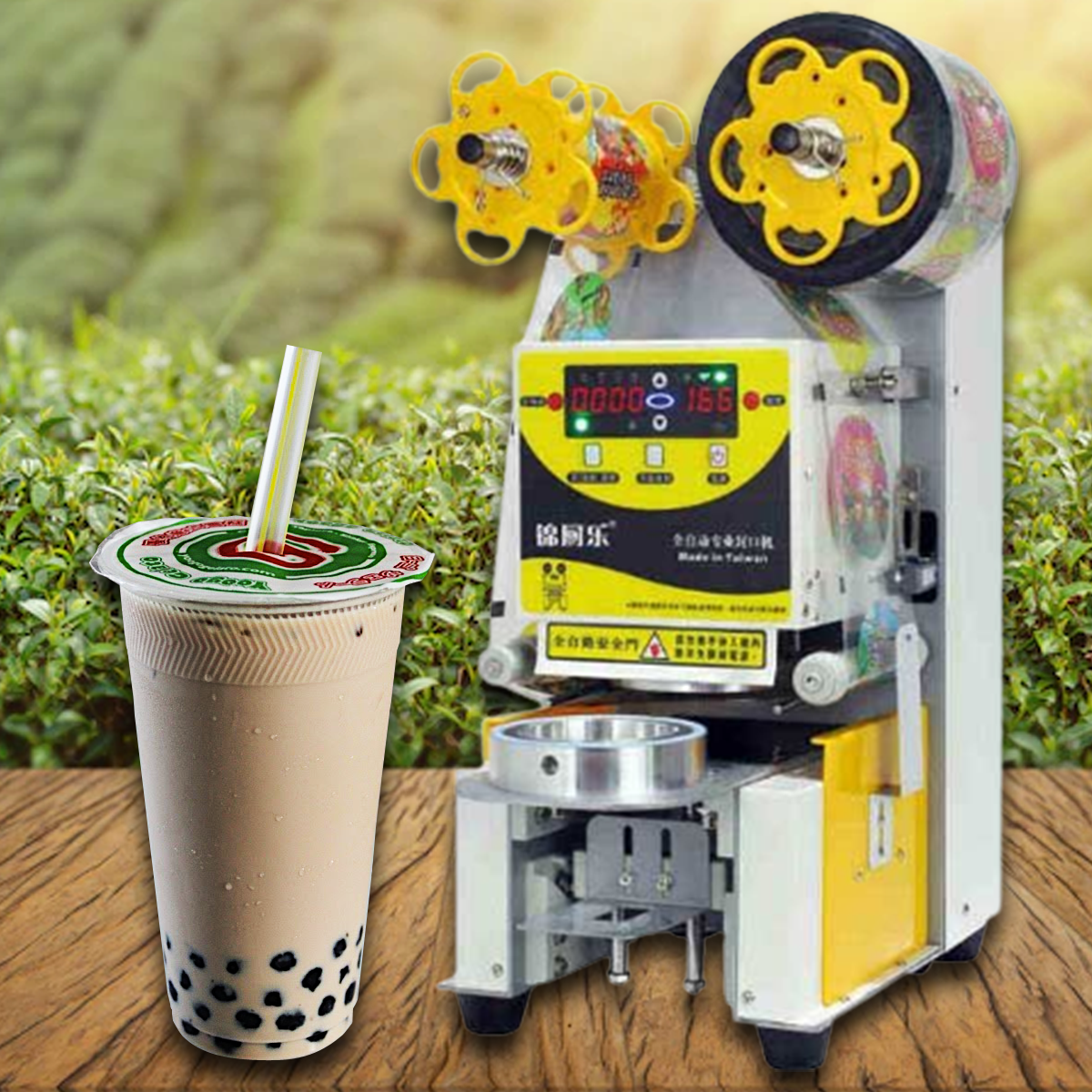 เครื่องซีลฝาแก้ว แบบอัตโนมัติ นับแก้วได้ รุ่น Q10 350W สำหรับฝาแก้วขนาด 9.0 หรือ 9.5 ซม. ความเร็ว 500แก้วต่อชั่วโมง
