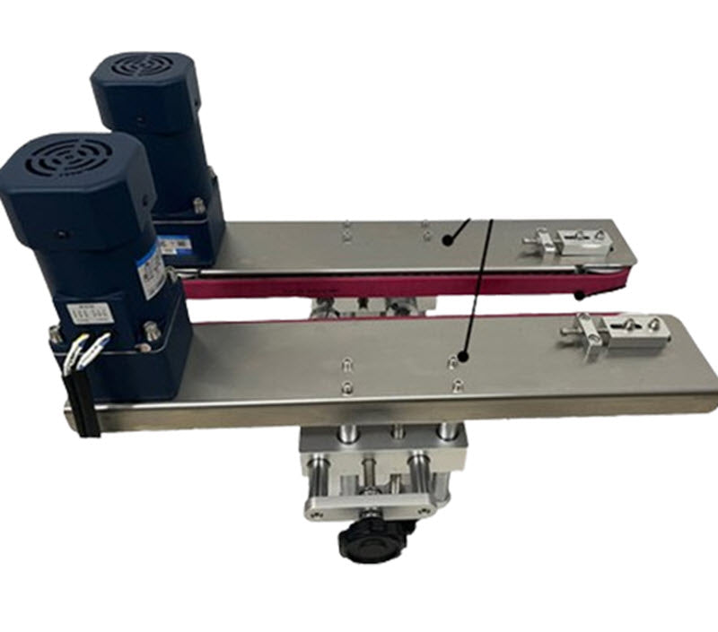 เครื่องติดฉลากและบรรจุขวดอัตโนมัติ รุ่นสายพานส่งขวด พร้อมโต๊ะทำงานและระบบพิมพ์วันที่