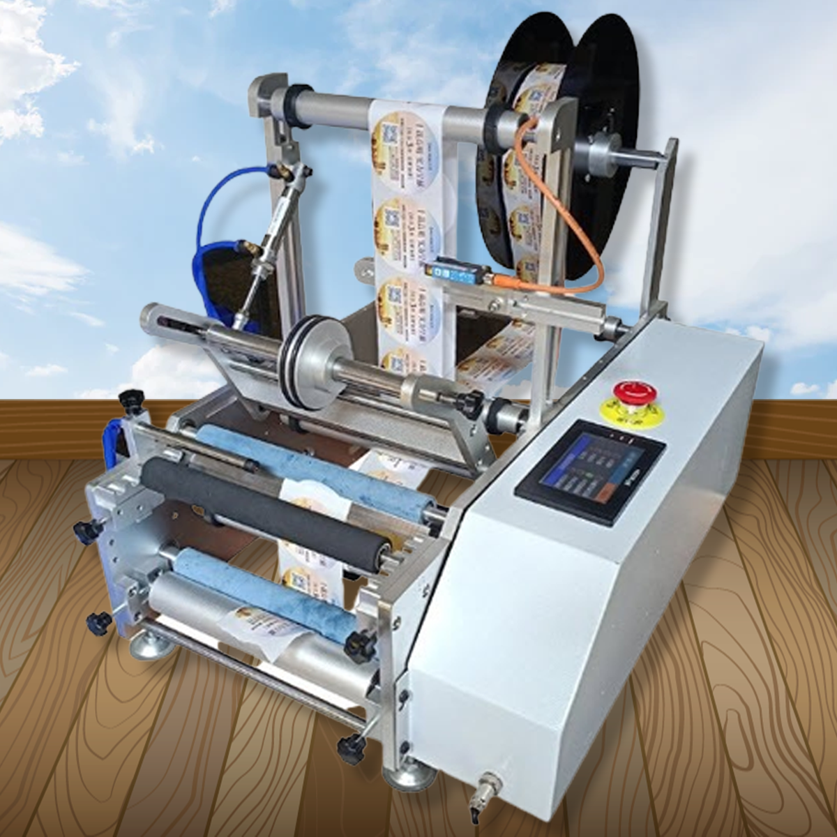 เครื่องติดฉลาก รุ่น JQ-12002 สติ๊กเกอร์ ขวด กึ่งอัตโนมัติ SEMI-AUTOMATIC BOTTLE LABELING MACHINE -