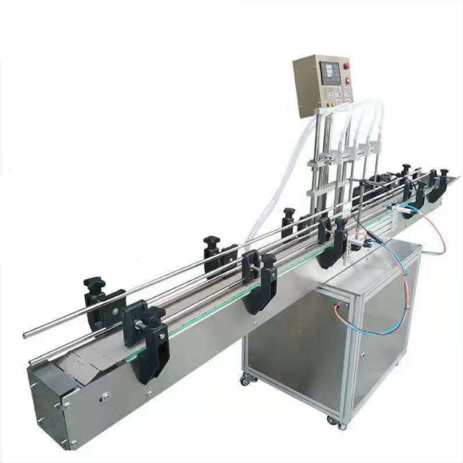 เครื่องบรรจุของเหลว 4 หัวบรรจุ ช่วงบรรจุ 7 ลิตร พร้อมระบบหมุนปิดฝาขวด -