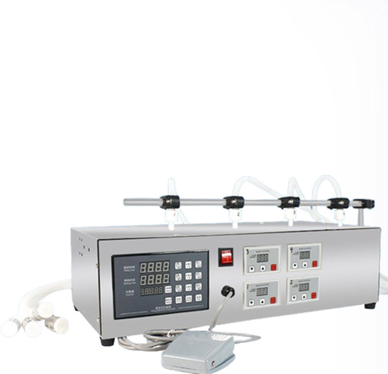 เครื่องบรรจุของเหลว 4 หัว ขนาดเล็ก ควบคุมด้วยคอมพิวเตอร์ สำหรับน้ำมันหอมระเหย น้ำผลไม้ และนม