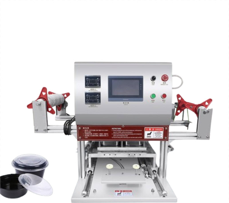 เครื่องบรรจุอาหารอัตโนมัติ ขนาดเล็ก 4 ช่อง สำหรับบรรจุ PP กล่องอลูมิเนียม ฟิล์มปิดผนึก