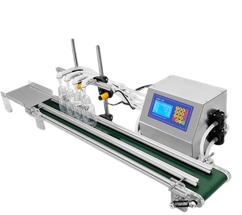 เครื่องบรรจุเหล้าขาวอัตโนมัติ 4 หัว ขนาดเล็ก ระบบสายพานลำเลียง สำหรับของเหลว