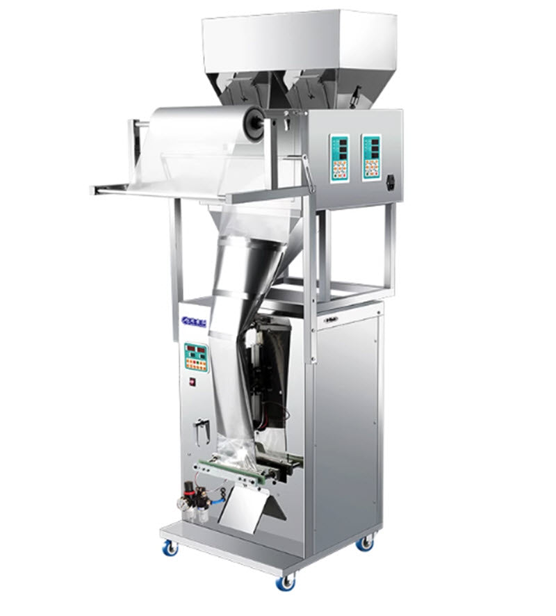 เครื่องบรรจุและผสมสองหัวอัตโนมัติเต็มรูปแบบ เครื่องบรรจุสองระดับสำหรับเม็ด ผง ข้าว สมุนไพร ปุ๋ย เครื่องบรรจุเชิงปริมาณ เครื่องชั่งและบรรจุถุงสำหรับโรงสีแป้ง
