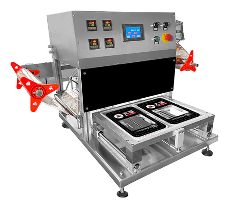 เครื่องปิดผนึกอัตโนมัติเต็มรูปแบบสำหรับรักษาความสดในบรรยากาศดัดแปลงที่เติมไนโตรเจน, เครื่องปิดผนึกและบรรจุภัณฑ์แบบสี่กล่องที่ใช้ลม, เครื่องบรรจุกล่องอาหารกลางวันแบบใช้แล้วทิ้งสำหรับนำกลับบ้านเชิงพาณิชย์ที่ติดตั้งจากโรงงาน, เนื้อสด, เป็ดดำ, อาหารตุ๋น, เครื่องปิดผนึกชามและถ้วย, เครื่องบรรจุมันสำปะหลัง
