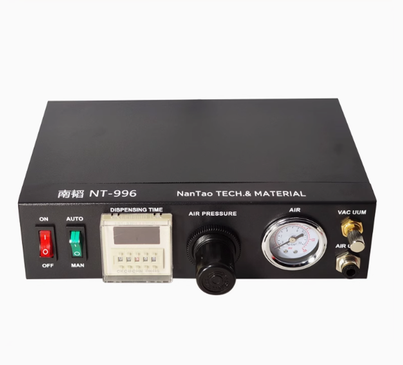 เครื่องพ่นกาวซิลิโคนอัตโนมัติ NT-996 ควบคุมปริมาณหยดได้แม่นยำ ใช้งานง่าย เหมาะสำหรับงานประกอบชิ้นส่วนอิเล็กทรอนิกส์ หัตถกรรม หรืออุตสาหกรรมที่ต้องการความแม่นยำสูง รองรับแรงดันลมและไฟฟ้ามาตรฐานอุตสาหกรรม