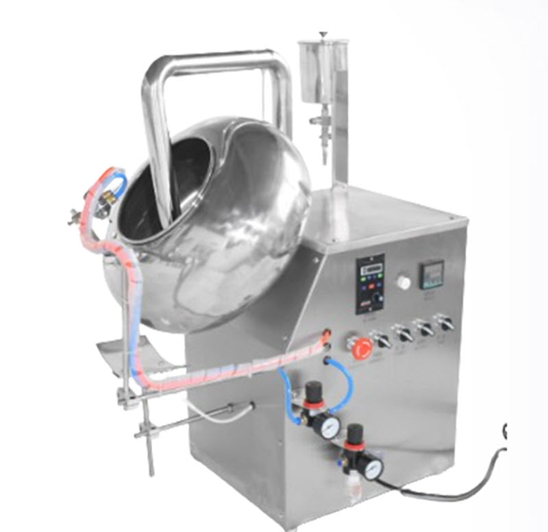 เครื่องเคลือบขนมอัตโนมัติ BYC ขนาดเล็ก สำหรับเคลือบช็อกโกแลตและเม็ดฟิล์มในห้องปฏิบัติการ